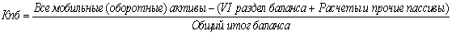 К очевидным достоинствам данной модели можно отнести то, что механизм ее разработки и все основные этапы расчетов достаточно подробно описаны в источнике. Коэффициент прогноза банкротства (Кпб) характеризует удельный вес чистых оборотных средств в сумме актива баланса. Он исчисляется по формуле: