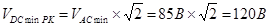Рассчитаем максимальное значение напряжения на диодном мосте: