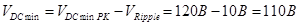 где: VDCminPK минимальное амплитудное значение входного напряжения, VDCmin минимальное значение входного напряжения с учетом пульсаций. Найдем время разряда конденсатора C6 за половину периода: