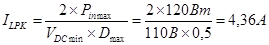 где Dmax=0,5, скважность импульсов на первичной обмотке. Рассчитаем максимальный ток через демпферный диод VD7: