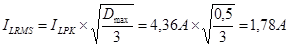 Значение пикового тока, которое протекает через индуктивность можем определить по формуле:
