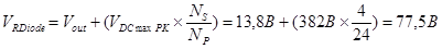 Принимаем диаметр проводника dAUX=0,64мм (22 AWG). Рассчитаем параметры выходного диода VD11. Определим максимальное обратное напряжение на диоде: