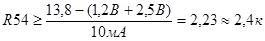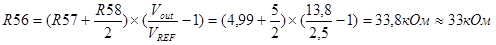 где R57=4,99кОм, а R58=5кОм – рекомендованные значения из таблицы характеристик TL431. Определим сопротивление резистора R54: