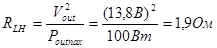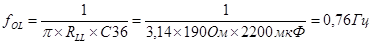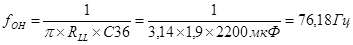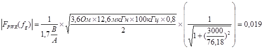 где: RL=3,6Ом – выходное индуктивное сопротивление, LP=12,6мкГн – индуктивность первичной обмотки трансформатора, fg=3000Гц – частота на которой проводится расчет, f0=76,18 – граничная частота при максимальной нагрузке.