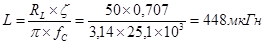 где: ζ – коэффициент затухания, ζ=0,707, RL =50Ом - импеданс линии,