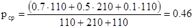 Находим по рассчитанным значениям z1 и z2, R – коэффициент, который учитывает относительную яркость противоположного дома: R = 0.22 Рассчитаем коэффициент отражения поверхности помещения: где: р1, р2, р3 – коэффициенты отражения потолка, стен, пола. Соответственно (р1 = 0.7, р2 = 0.5, р3 = 0.1); S1, S2, S3 – площадь потолка, стен, пола (S1 = 110 м2, S2 = 210 м2, S3 = 110 м2)