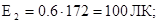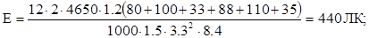 где: n – количество ламп в светильнике; m – коэффициент, учитывающий увеличение освещения за счет отражения отдаленных светильников, m = 1.2; m – количество рядов светильников, m = 6; Еі – относительная освещенность в расчетной площади, от і-го полуряда светильников (ЛК), рассчитывается по формуле ; Фі – коэффициент перехода от горизонтального освещения к наклонному, так как столы горизонтальные, то Ф = 1 для всех Е; k3 – коэффициент запаса, учитывается запыленность, k3 = 1.5; Ір – длинна ряда, Ір = 8.4 м;