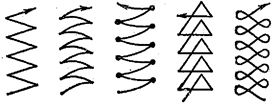 Поперечные колебательные движения конца электрода (рис. 5) Рис. 5. Траектория движения конца электрода при ручной дуговой сварке. определяются формой разделки, размерами и положением шва, свойствами свариваемого материала, навыком сварщика. Для широких швов, получаемых с поперечными колебаниями, e=(1,55)d э . Для повышения работоспособности сварных конструкций, уменьшения внутренних напряжений и деформаций большое значение имеет порядок заполнения швов. Под порядком заполнения швов понимается как порядок заполнения разделки шва по поперечному сечению, так и последовательность сварки по длине шва. По протяжённости все швы условно можно разделить на три группы: короткие - до 300 мм, средние-300-1000, длинные - свыше 1000 мм.