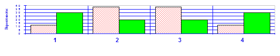 Выдвинем гипотезы: Њ0 : Все товары одинаково популярны или РА =РB =РC =РD =0.25 Њ1 : Популярности товаров значимо различны. Несложный расчет дает расчетную величину критерия около 14, т.е. ощутимо больше критического значения 7.8 для 3–х степеней свободы по табл. 6–1. Это дает нам основание отвергнуть гипотезу о равной популярности этих видов товара. 7. Выборочные распределения на шкале OrdСлучайные величины с порядковой шкалой измерения – это дискретные, для всех допустимых значений которых, кроме отношений“=" или "#”, разрешены отношения “<" или ">”. Классическим примером порядковых величин являются оценки знаний, успеваемости, приоритета. Для таких СВ, как и для номинальных, не имеют смысла понятия моментов распределений. Продемонстрируем ряд задач, возникающих при оперировании такими величинами и рассмотрим специальные методы непараметрической статистики в применении к этим задачам. Следует различать ситуации, связанные с величинами на порядковой шкале: · случайная величина имеет всего два допустимых значения (одно из них больше, предпочтительнее второго); · случайная величина имеет более двух допустимых значений. В первом случае мы имеем по сути дела двух позиционную номинальную шкалу и все сказанное выше о распределениях на шкале Nom вполне приемлемо для решения задач на такой шкале Rel. К примеру – задачи о проверке симметрии монеты или о допустимом количестве бракованных изделий вполне могут рассматриваться с использование порядковой шкалы, если считать герб “старше” решки, бракованное изделие “хуже” исправного. Второй тип СВ предполагает наличие нескольких фиксированных значений, упорядоченных по некоторому признаку, свойству или нашему предпочтению. В этих случаях говорят, что случайная величина (например – оценка знаний, сорт товара) может быть величиной “первого ранга”, “второго ранга” и т.д. В принципе корректная постановка задач о распределении СВ на порядковых (ранговых) шкалах ничем не отличается от рассмотренных ранее методов статистики для интервальных, относительных и номинальных шкал. Пусть мы наблюдали, зафиксировали оценки знаний 100 обучаемых по четырех ранговой шкале (“отлично”, “хорошо”, “удовлетворительно” и “плохо”) Таблица 7–1