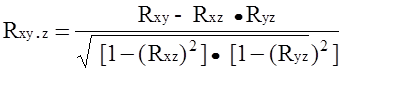 называют ковариацией случайных величин, которая также служит мерой связи, но без непосредственного учета дисперсий. Различие между такими двумя показателями парной связи СВ достаточно существенное. · Коэффициент корреляции определяет степень, тесноту линейной связи между величинами и является безразмерной величиной. · Ковариация двух СВ определяет эту связь безотносительно к ее виду и является величиной размерной. 3.2 Множественная корреляцияВ ряде случаев статистического анализа приходится решать вопрос о связях нескольких (более 2) СВ или вопрос о множественной корреляции. Пусть X, Y и Z – случайные величины, имеющие математические ожидания M(X), M(Y), M(Z) и среднеквадратичные отклонения sx ,sy , sz соответственно. Тогда можно найти парные коэффициенты корреляции Rxy , Rxz , Ryz по приведенной выше формуле. Но этого явно недостаточно – ведь мы на каждом из трех этапов попросту забывали о наличии третьей СВ! Поэтому в случаях множественного корреляционного анализа иногда требуется отыскивать т. н. частные коэффициенты корреляции — например, оценка виляния Z на связь между X и Y производится с помощью коэффициента