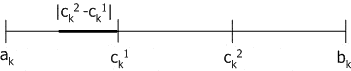 где N – количество разрядов для кодирования битовой строки. Эта формула показывает, что p сильно зависит от N, т.е. точность представления определяется количеством разрядов, используемых для кодирования одной хромосомы. Поэтому при увеличении N пространство поиска расширяется и становится огромным. Известный книжный пример: пусть для 100 переменных, изменяющихся в интервале Эффективность генетических алгоритмов с двоичным кодированием в этом случае будет невысокой. На первых итерациях алгоритм потратит много усилий на оценку младших разрядов числа, закодированных во фрагменте двоичной хромосомы. Но оптимальное значение на первых итерациях будет зависеть от старших разрядов числа. Следовательно, пока в процессе эволюции алгоритм не выйдет на значение старшего разряда в окрестности оптимума, операции с младшими разрядами окажутся бесполезными. С другой стороны, когда это произойдет, станут не нужны операции со старшими разрядами – необходимо улучшать точность решения поиском в младших разрядах. Такое «идеальное» поведение не обеспечивает семейство генетических алгоритмов с двоичным кодированием, т.к. эти алгоритмы оперируют битовой строкой целиком, и на первых же эпохах младшие разряды чисел "застывают", принимая случайное значение. В классических генетических алгоритмах разработаны специальные приемы по выходу из этой ситуации. Например, последовательный запуск ансамбля генетических алгоритмов с постепенным сужением пространства поиска. Есть и другая проблема: при увеличении длины битовой строки необходимо увеличивать и численность популяции. Математический аппарат непрерывных генетических алгоритмов Как уже отмечалось, при работе с оптимизационными задачами в непрерывных пространствах вполне естественно представлять гены напрямую вещественными числами. В этом случае хромосома есть вектор вещественных чисел. Их точность будет определяться исключительно разрядной сеткой той ЭВМ, на которой реализуется real-coded алгоритм. Длина хромосомы будет совпадать с длиной вектора-решения оптимизационной задачи, иначе говоря, каждый ген будет отвечать за одну переменную. Генотип объекта становится идентичным его фенотипу. Вышесказанное определяет список основных преимуществ алгоритмов с непрерывными генами: Использование непрерывных генов делает возможным поиск в больших пространствах (даже в неизвестных), что трудно делать в случае двоичных генов, когда увеличение пространства поиска сокращает точность решения при неизменной длине хромосомы. Одной из важных черт непрерывных генетических алгоритмов является их способность к локальной настройке решений. Использование непрерывных генетических алгоритмов для представления решений удобно, поскольку близко к постановке большинства прикладных задач. Кроме того, отсутствие операций кодирования/декодирования, которые необходимы в генетических алгоритмах с двоичным кодированием, повышает скорость работы алгоритма. Как известно, появление новых особей в популяции канонического генетического алгоритма обеспечивают несколько биологических операторов: отбор, скрещивание и мутация. В качестве операторов отбора особей в родительскую пару здесь подходят любые известные из двоичных генетических алгоритмов: рулетка, турнирный, случайный. Однако операторы скр