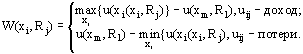 Для удобства запишем его в виде транспонированного вектора max uxR = <250, 230, 210, 300>т и выбираем минимальное значение 210. Таким образом, при данных условиях рациональным решением будет x=3, R=10, min uxR = 210. · Если в таблице фигурируют доходы при различных стратегиях, то критерий Вальда принимает форму максимина (максимум из минимумов), то есть критерий (2.6) имеет вид