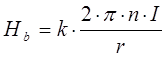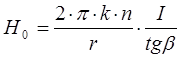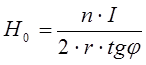 с другой стороны. Напряжённость магнитного поля в центре катушки тангенс–гальванометра равна: