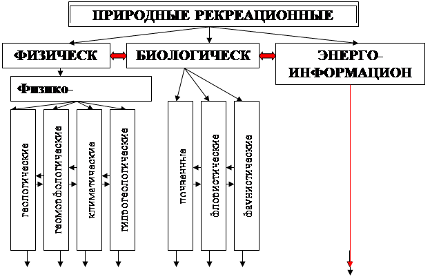 Рис. 3. Схема классификации природных рекреационных ресурсов Еще одно отличие потенциала от ресурса состоит в том, что потенциал достаточно четко связан с конкретной задачей, для решения которой он определяется, в то время как ресурс хотя и рассматривается в контексте своего назначения, но его связь с конкретным пользователем не столь определенна. Наконец, описание потенциала какого-либо объекта, как правило, предполагает и оценку этого потенциала в сравнении с потенциалом другого объекта. Таким образом, после анализа всех основных видов природных рекреационных ресурсов уточненная их классификация будет выглядеть следующим образом (рис.3). Третья глава посвящена особенностям природопользования в прибрежных зонах. Роль природопользования как стержневого процесса освоения территории/акватории и как эффективного объекта управления пространством, с нашей точки зрения, сегодня не до конца осознана ни государственной практикой управления, ни наукой. Государственное управление рассматривает природопользование как набор экономических проблем, отягощенных социально-экологическими ограничениями. Подход науки к природопользованию также сводится преимущественно к рассмотрению его в качестве области сугубо прикладных ресурсных исследований без особого внимания к его освоенческой роли. Природопользование в береговой зоне как динамическое явление изначально исходно неоднородно в своем пространственном положении, что обусловлено: неразрывным взаимным переплетением всех видов ресурсов между собой и этим пространством; неоднородным размещением природных ресурсов — земельных, лесных; водных ресурсов, рыб и животных, полезных ископаемых, уникальных ландшафтов и т. д.; различной степенью экономической освоенности территорий (акваторий), в пределах которых осуществляется природопользование, а это определяет уровень экономической доступности (недоступности) ресурсов и уровни их использования; различной изученностью территорий (акваторий), что вызвано недостаточной изученностью имеющихся ресурсов; и не завершенностью реализации первой стадии природопользования в виде земле- и лесоустройства, геологоразведки. различными физико-географическими условиями разных участков территории, что определяет не только физическую, но и экономическую доступность/недоступность ресурсов на каждом из этих участков. Система природопользования выступает базовой системой для всех остальных видов социально-экономической деятельности и всегда является компромиссом между необходимостью вторжения человека в природные системы и стихийным или целенаправленным, осознанным стремлением эти системы в той или иной мере сохранить, чтобы: а) обеспечить достаточно разумные сроки их использования и исключение полного истощения ресурсной базы; б) в определенной степени современное состояние окружающей природной среды. На основании вышеизложенного и с учетом иностранного и отечественного опыта исследований в этой области автором были сформулированы следующие принципиальные методологические положения природопользования в прибрежных регионах: в любом виде хозяйственной деятельности всегда используется сочетание природных ресурсов: земельных, водных, атмосферных и др.; любой вид хозяйственной деятельности всегда осуществляет прямо