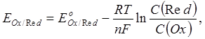 где С(Red) и C(Ox) – молярные концентрации соответственно восстановленной и окисленной форм соединения.