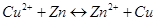 суммарный окислительно-восстановительный процесс самопроизвольно осуществляется при условии протекания восстановительной реакции только на медном электроде, а окислительной – на цинковом. Следовательно, в объединенном уравнении электродная реакция процесса с меньшим потенциалом записывается в обратном направлении, а процесса с большим потенциалом – в том виде, в каком она представлена в таблице, т.е. в форме процесса восстановления: