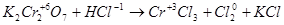На связывание продуктов реакции в соответствии с основными коэффициентами необходимо 8 молекул HCl, которые не окисляются (на образование 2 молекул CrCl3 и 2 молекул KCl). Таким образом: K2Cr2O7 + 6HCl + 8HCl® 2CrCl3 + 3Cl2 + 2KCl. на восстановление на связывание Уравниваем водород или кислород, добавив в правую часть уравнения 7 молекул воды H2O, и получим окончательно: K2Cr2O7 + 14HCl ® 2CrCl3 + 3Cl2 + 2KCl + 7H2O. 6.
