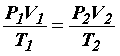 Законы Шарля и Гей-Люссака можно объединить в один общий закон, связывающий параметры P, V и T при неизменной массе газа. Действительно, предположим, что начальное состояние газа при m = const характеризуется параметрами V1, Р1, Т1, а конечное – соответственно V2, Р2, Т2. Пусть переход из начального состояния в конечное состояние происходит с помощью двух процессов: изотермического и изобарического. В ходе первого процесса изменим давление с Р1 на Р2. Объем, который займет газ после этого перехода, обозначим V, тогда по закону Бойля–Мариотта, Р1V1 = Р2V, откуда