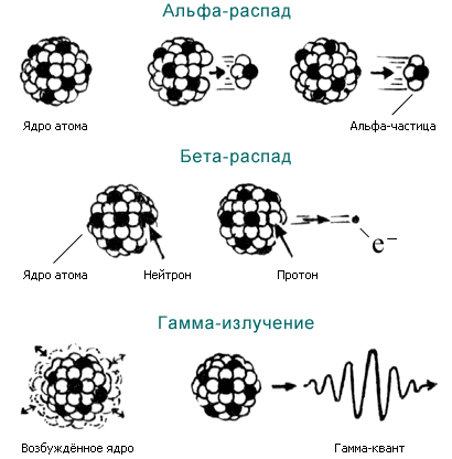 Рис. 2. Основные виды ядерных превращений, приводящие к испусканию радиоактивных излучений При альфа-распаде из ядра вылетает сравнительно тяжелая альфа-частица, которая представляет собой ядро атома гелия. Энергия вылетающей альфа-частицы по атомным масштабам довольно высока – примерно 5...10 МэВ, то есть почти в миллион раз больше энергии электрона в атоме. Поэтому альфа-частицы, проходя через вещество, могут производить в нем обильные нарушения вследствие ионизации и возбуждения атомов. При бета-распаде нейтрон внутри ядра самопроизвольно превращается в протон, и при этом испускается электрон (или, наоборот, протон переходит в нейтрон с испусканием позитрона). Кроме электрона и позитрона, при бета-распаде возникают также нейтрино и антинейтрино, однако их воздействие на вещество ничтожно. Образовавшееся в результате радиоактивного распада ядро, как правило, сильно возбуждено, и оно освобождается от избыточной энергии, испуская жесткие гамма-кванты. Это гамма-излучение обладает большой проникающей способностью и может причинить немалый вред живому организму. Если зрение или обоняние – вспомним нюх собаки! – по своей обнаружительной способности близки к физическим пределам (которые невозможно преодолеть никакими техническими ухищрениями), то при восприятии радиации человек находится почти на пределе «тупости». Поэтому без специальных приборов мы не можем судить ни об уровне радиации, ни даже об ее наличии или отсутствии, а следовательно, и о грозящей нам опасности. В таких приборах используются те же самые радиационные эффекты, которые причиняют нам вред, в частности, ионизация частиц среды. Ионизационный метод регистрации излучения стал исторически первым – он начал широко использоваться в 20-х годах. В связи с этим были предприняты попытки установить такие единицы измерения радиации, которые позволили бы связать ионизационный эффект с биологическим, а также с поглощением энергии излучения. В 1928 году в качестве такой единицы был принят рентген (обозначается Р, R). Введение новой единицы вызвало много споров. Прежде всего возник вопрос: рентген – единица чего? Какой наблюдаемой физической величине она соответствует? Ответ на этот вопрос давался по-разному, однозначного толкования рентгена вначале не было. Какое-то время рентген рассматривали как количество излучения, характеризующее поглощенную из потока радиации энергию в единице массы воздуха. Такая интерпретация рентгена, вообще говоря, не соответствовала его определению как меры ионизационного эффекта. Ведь поглощенная энергия и число образовавшихся пар ионов – разные физические величины, поэтому использовать рентген для оценки поглощенной энергии оказалось неудобным. Однако в соответствии с «энергетическим постулатом», специалистов по физике защиты от излучений и радиобиологов интересовала в первую очередь поглощенная в живой ткани энергия. Трудности, возникавшие при ее подсчете через единицу «рентген», требовали разных уточнений и оговорок. Применение рентгена для оценки поглощенной энергии было неудобно еще и потому, что эта единица была введена и соответственно метрологически поддерживалась только для рентгеновского и гамма-излучений (да и то, строго говоря, с определенным спектром). Чтобы сравнивать эффекты, производимые в веществе корпу