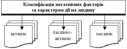 8. Як поділяються негативні фактори за характером дії на людину?