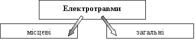 До місцевих електротравм відносять опіки, металізацію шкіри, електричні знаки, механічні пошкодження та електроофтальмію.