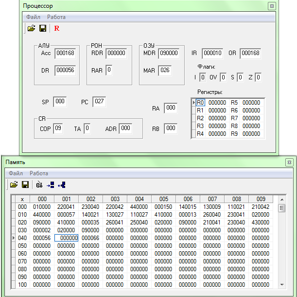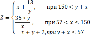 В ячейке памяти 40 хранится значение переменной Y, в ячейке 41 значение X. При запуске программы на выполнение, содержимое ячейки помещается в аккумулятор и происходит сравнение переменных X и Y с областью определения функции. Также в ячейку 43 помещается сумма X и Y. В зависимости от значения переменных X и Y вычисляется соответствующая формула. Значение выводится в поле OR.