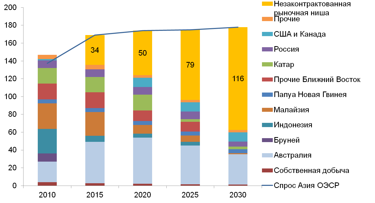 Однако достаточно крупные объемы незаконтрактованного спроса все еще сохраняются на рынках Японии и Южной Кореи, которые также являются потенциальными покупателями российского газа.