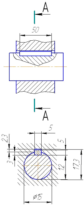 Соединение вала шестерни с другим валом или шестернёй. Соединение разъемное , неподвижное. Неподвижность обеспечивается шпонкой 29. Колесо должно хорошо центрироваться на валу для предотвращения биения в процессе работы. Для такого рода соединения, в случае умеренного нагружения применяются посадки с натягом. - прессовые соединения. Принимаем посадку 15 , как предпочтительную из ряда других. Небольшой натяг получающийся в большинстве соединений, достаточен для центрирования деталей и предотвращение их вибрации в процессе работы узла.