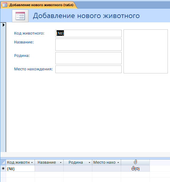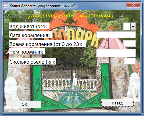 Сохраним полученную форму. Назовем ее: "Схема зоопарка".