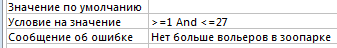 Чтобы возможно было поселить животных от 1 до 27 вольеров, и отсутствовали несуществующие номера вольеров которых нет, необходимо перейти в таблице: " конструктор \ свойства таблицы" и изменить следующие строки.