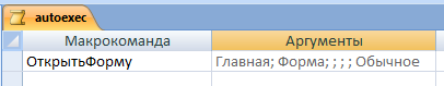 Назовем его " autoexec", такое название необходимо для того чтобы access выполнил этот макрос при запуске.