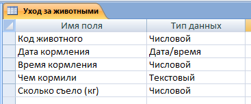 Для того чтобы избавиться от ошибочного ввода пиши животных создадим список с продуктами для животных. И с помощью поля с списком, изменим в форме 2 по примеру пункта 2.2.строку "Чем кормили".