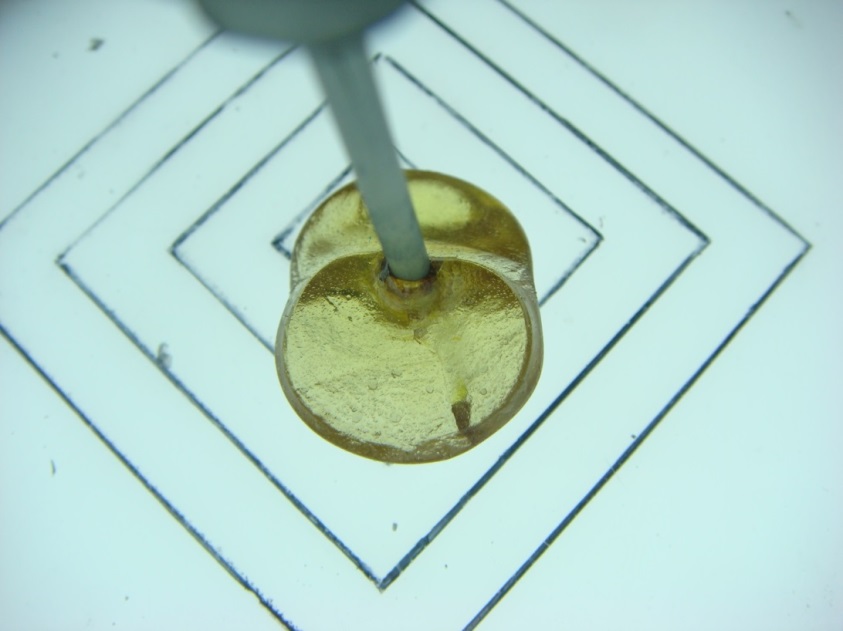 Тигель предварительно наплавляли синтезированной шихтой и проводили рост. Кристаллы выращивали методом Чохральского со скоростью вытягивания 1,5-3 мм/ч и скоростью вращения 8-20 об/мин. Первые кристаллы получали затравляясь на Мо и W проволоку. Полученные кристаллы имели тёмно-зелёный или желтый цвет (рис.4, 5).