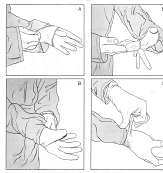 15. Взять перчатку правой рукой и в такой же последовательности надеть перчатку на левую руку. |