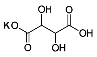 В качестве рабочего раствора использовали гидротартрат калия, KHT. Винная кислота, анионом которой является гидротартрат калия, имеет следующую структурную формулу: