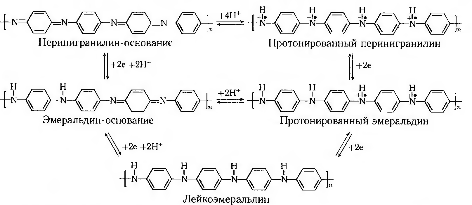 Рисунок 2 Электронная структура основных окисленных и допированных форм ПАн [7] |
