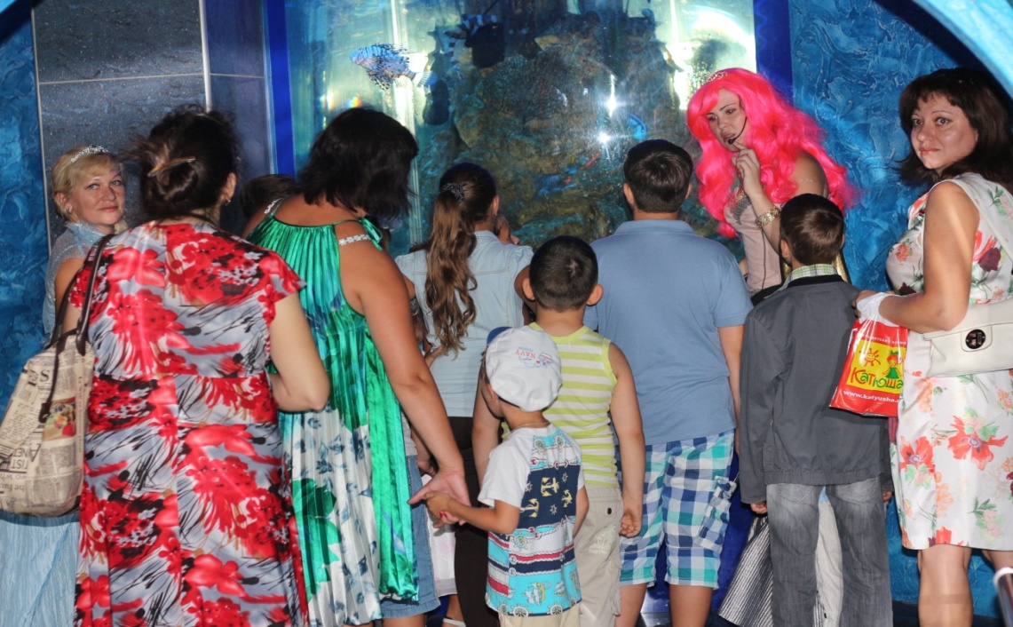 Цель новой экскурсии: привлечение детей познакомиться с уникальными видами обитателей водной фауны, их историей, повадками и интересными фактами. Предполагается, что она должна быть интересна детям в возрасте от 5 до 15 лет, показана в игровой форме с яркими красками и эмоциональностью, а так же вовлечение экскурсантов в процесс общения во время экскурсии.