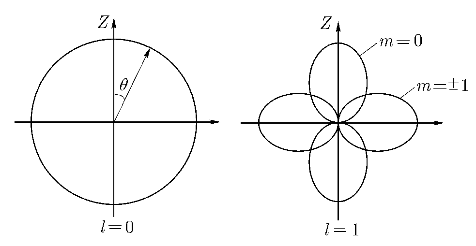 Рис. Полярные диаграммы пространственного распределения частицы в s- и р-состояниях