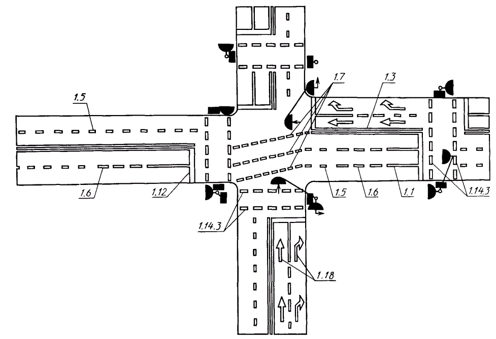 большая протяженность прямых участков, высокие уклоны, высокая интенсивность на пересечении в одном уровне |