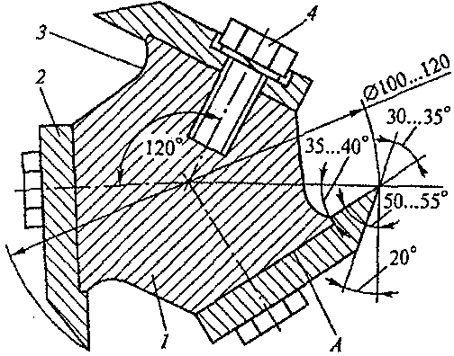 Рисунок 4.2 Трехножевая фреза в разрезе