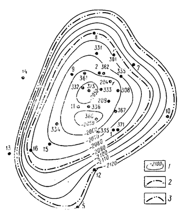 Рисунок 15 Структурная карта Аму-Дарьинского бассейна, с показателями нефтяных и газовых месторождений