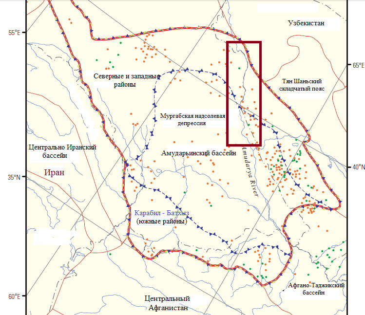 Бассейн Аму-Дарья является богатой нефтегазоносной провинцией бывшего Советского Союза, уступая только Западной Сибири по запасам и добыче природного газа. Большая часть провинции находится в Туркменистане и Узбекистане, и его краевых частях проходят в Афганистане и Иране (рис.13) [14].