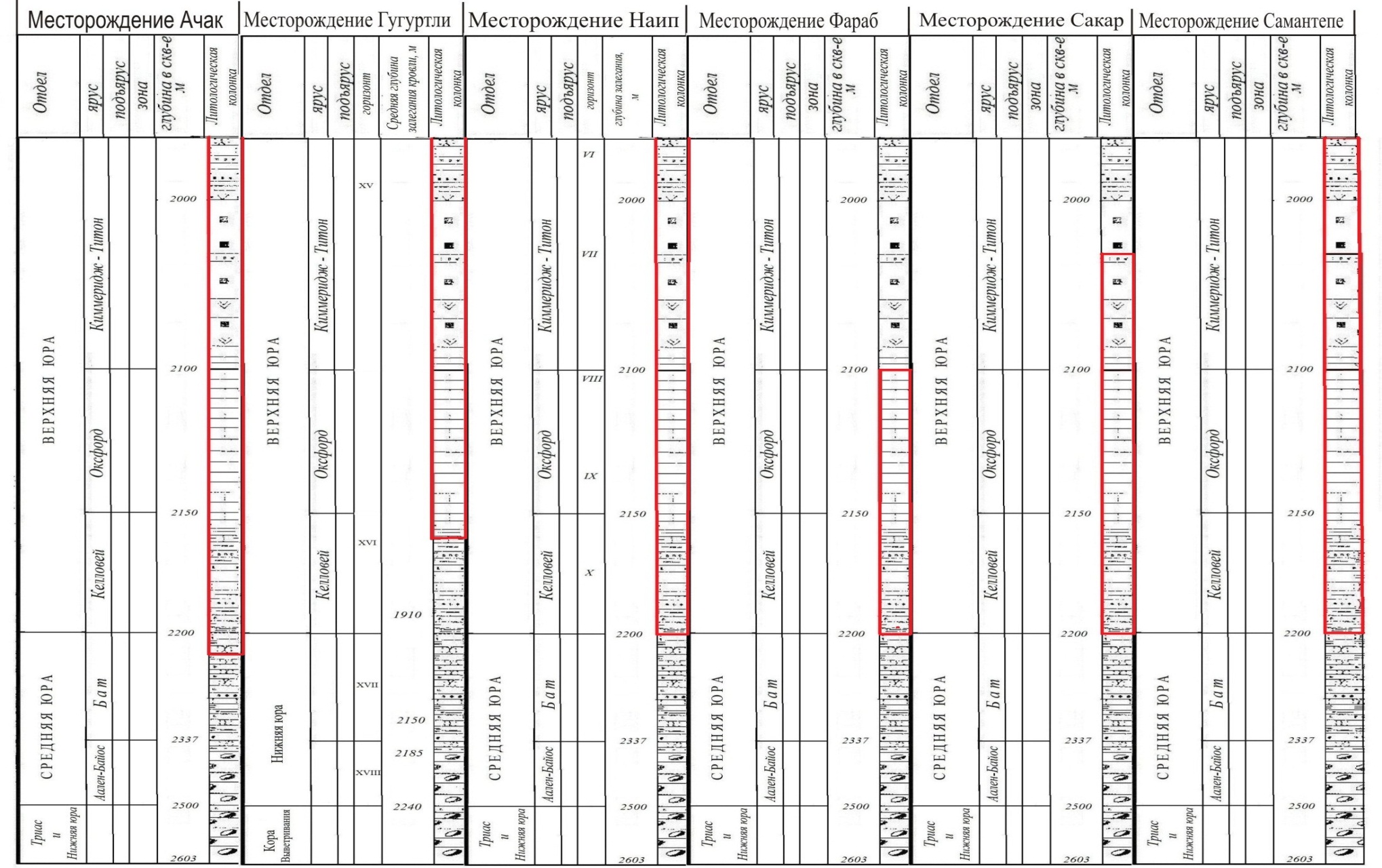 Рисунок 16 Сопоставление продуктивных горизонтов верхней юры и нижнего мела по месторождениям Приамударьинской области