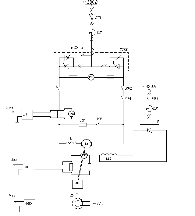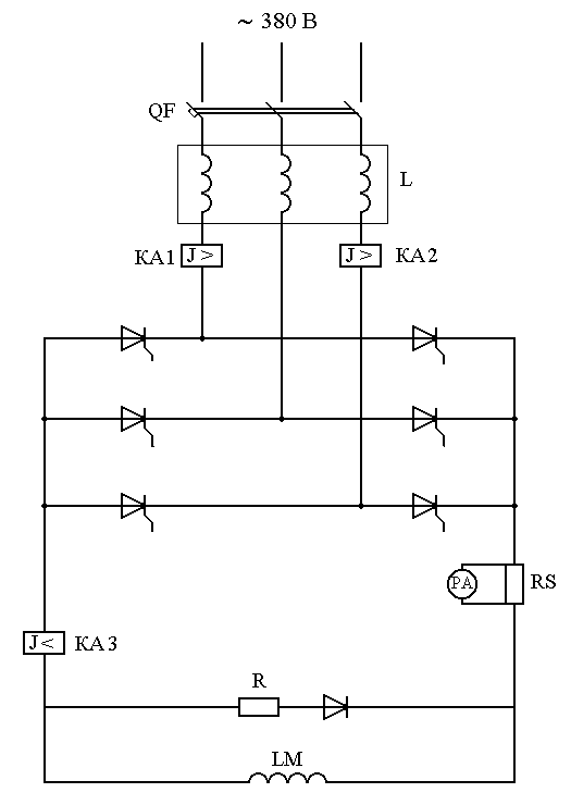 Рисунок 3.2 Упрощенная принципиальная схема реверсивного тиристорного