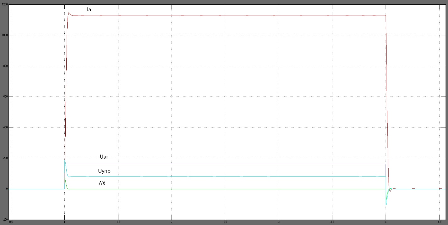 Осциллограмма тока в контуре регулирования тока с использованием ЗИТ, представлена на рисунке 4.6