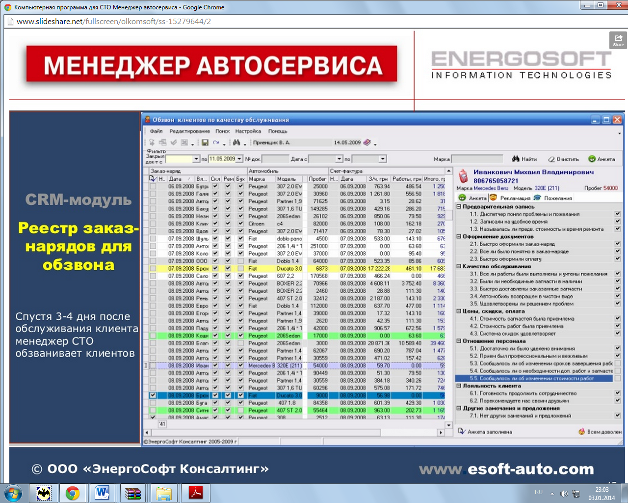 В левой части показан реестр заказ-нарядов, а в правой части для выбранного заказ-наряда представлена анкета опроса.