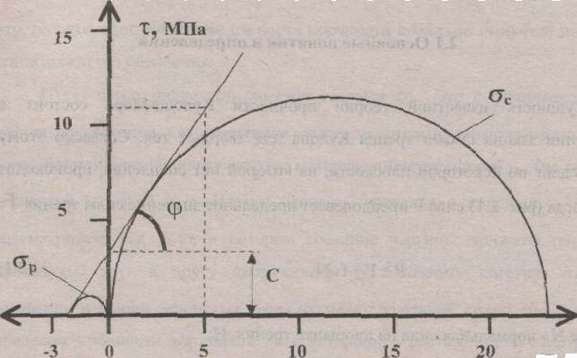 Рисунок 2.4 - Паспорт прочности горной породы к заданию 2.1
