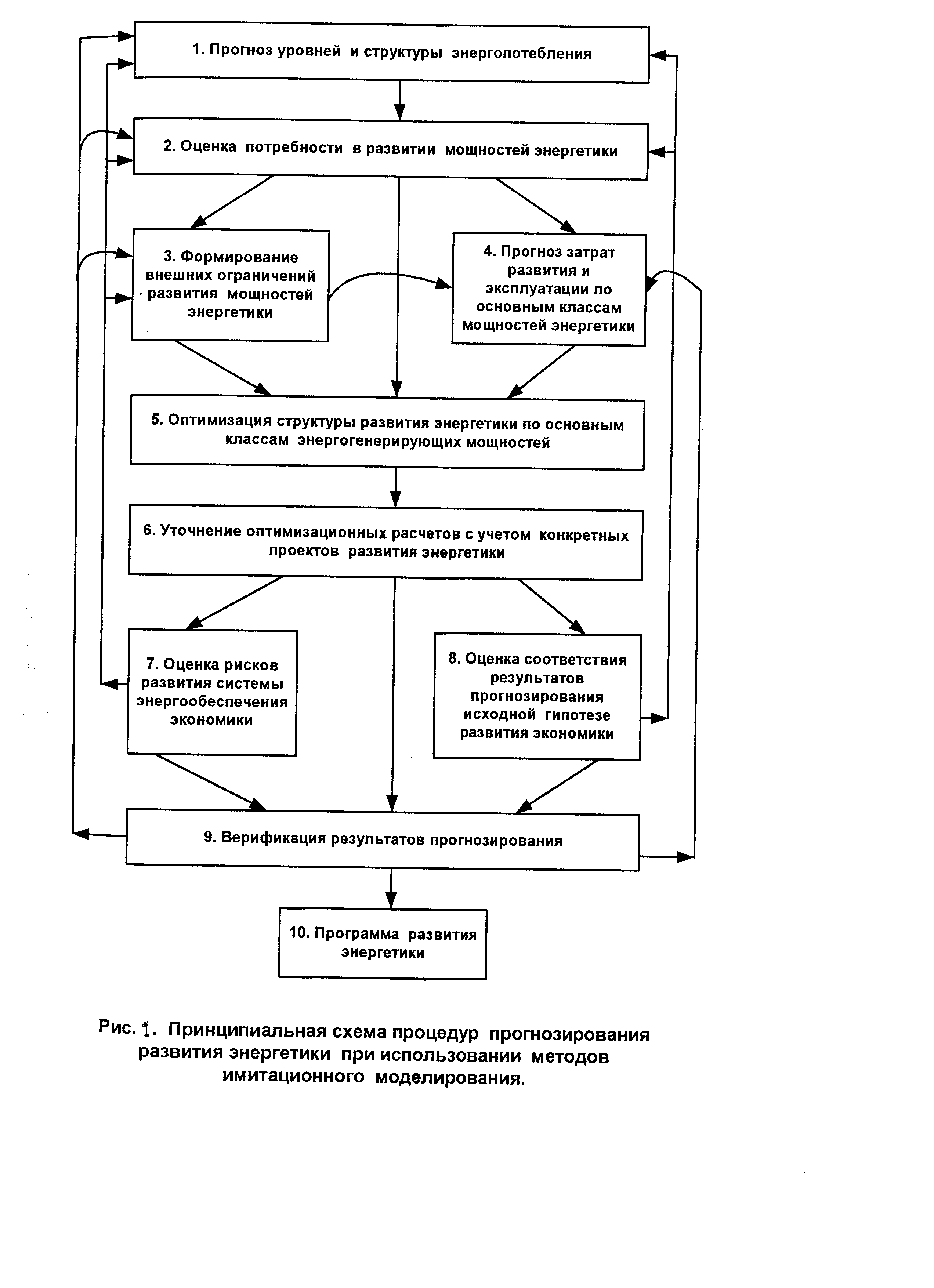 Рис. 1. Принципиальная схема процедур прогнозирования развития энергетики при использовании методов имитационного моделирования
