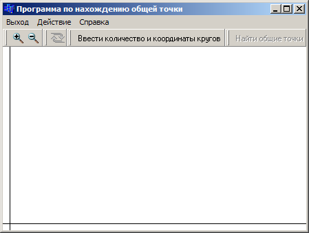 Как только приложение закончит построение новых кругов, можно нажать на кнопку «Найти общие точки» (Рисунок 10), расположенной на панели управления, для нахождения общей точки для всех кругов.