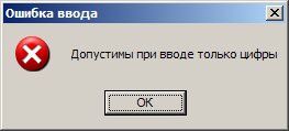 Рисунок 4. Сообщение, информирующее пользователя о неверном вводе данных.